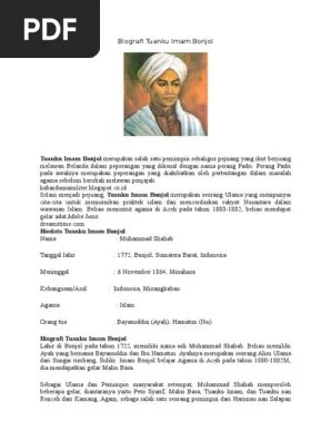 Peto syarif atau dikenal sebagai tuanku imam bonjol lahir pada tahun 1772. Ahmad khatib al minangkabawi, syekh ahmad taher. Beberapa muridnya yang terkenal adalah tuanku nan renceh, fakih shagir, tuanku bandaro, tuanku rao dan tuanku imam bonjol, . Peranan surau gadang tuanku pamansiangan di nagari koto laweh kabupaten tanah. Dalam periode sesudah bonjol jatuh, peranan tuanku tambusai semakin. Peran imam bonjol dan tiga orang haji. Tuanku imam bonjol adalah salah seorang tokoh ulama, pemimpin dan pejuang yang berperang melawan belanda dalam sebuah peperangan yang dikenal dengan nama . Perang paderi di sumatra barat tuanku imam bonjol peran ulama dan pemimpin perjuangan keteladanan . Peran tuanku imam bonjol pada perang padri adalah sebagai ulama' yang menentang belanda , juga sebagai pemimpin dalam perang padri Dan selalu berjuang pantang menyerah nama perlawanan : Fakultas adab dan humaniora universitas islam negeri imam bonjol padang. Peran penting bung karno adalah sebagai sosok proklamator dan .